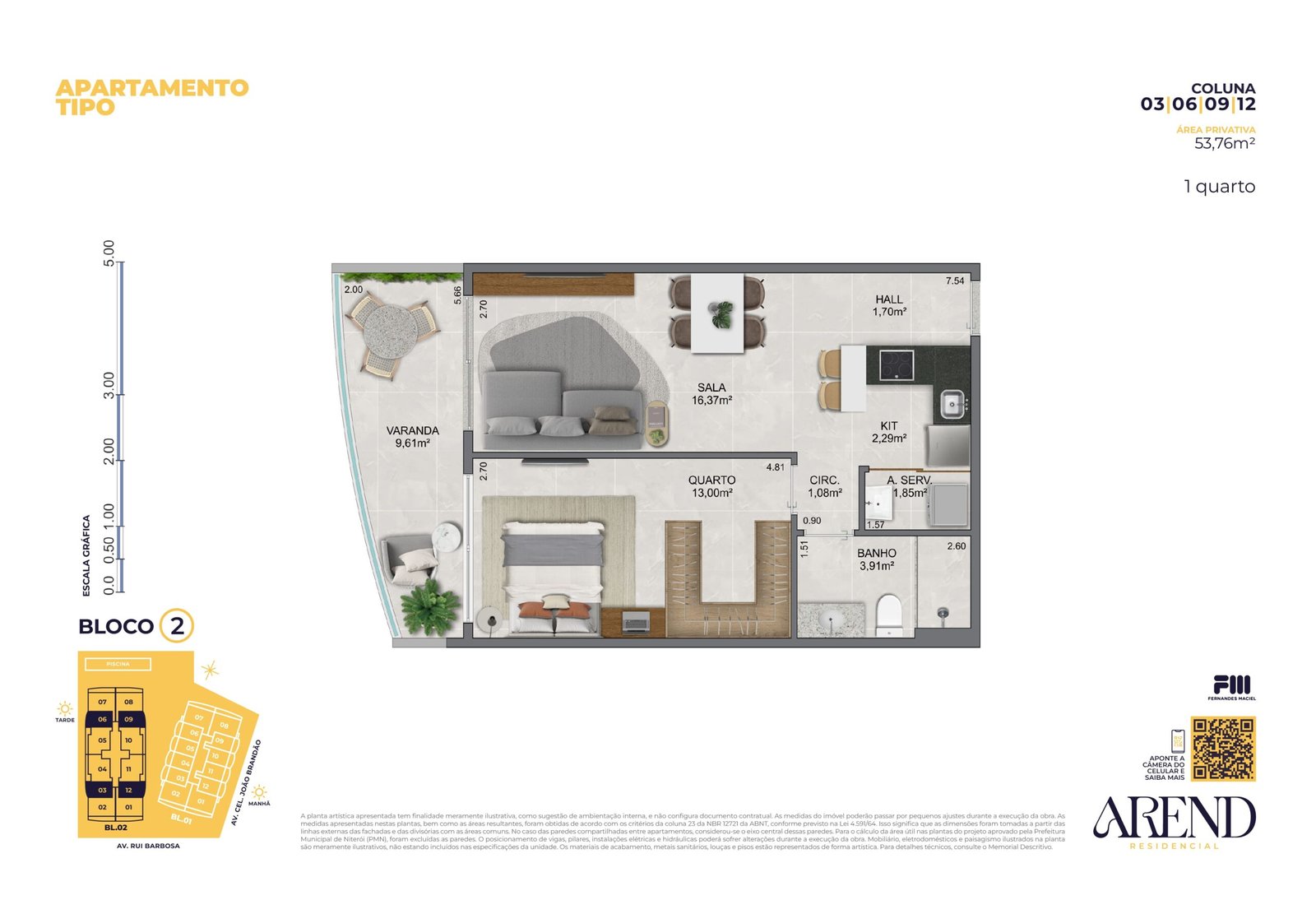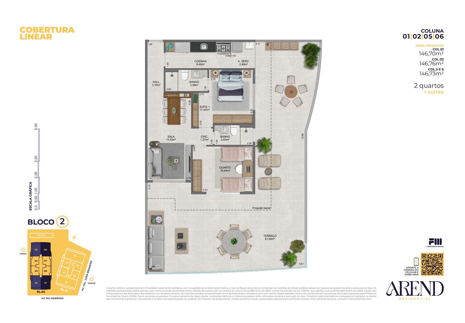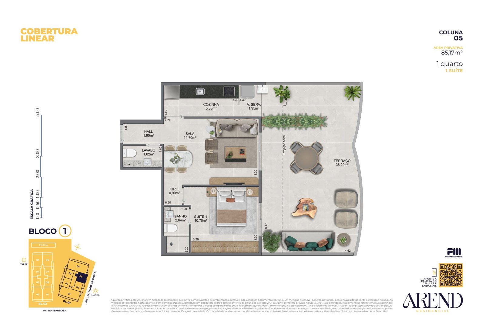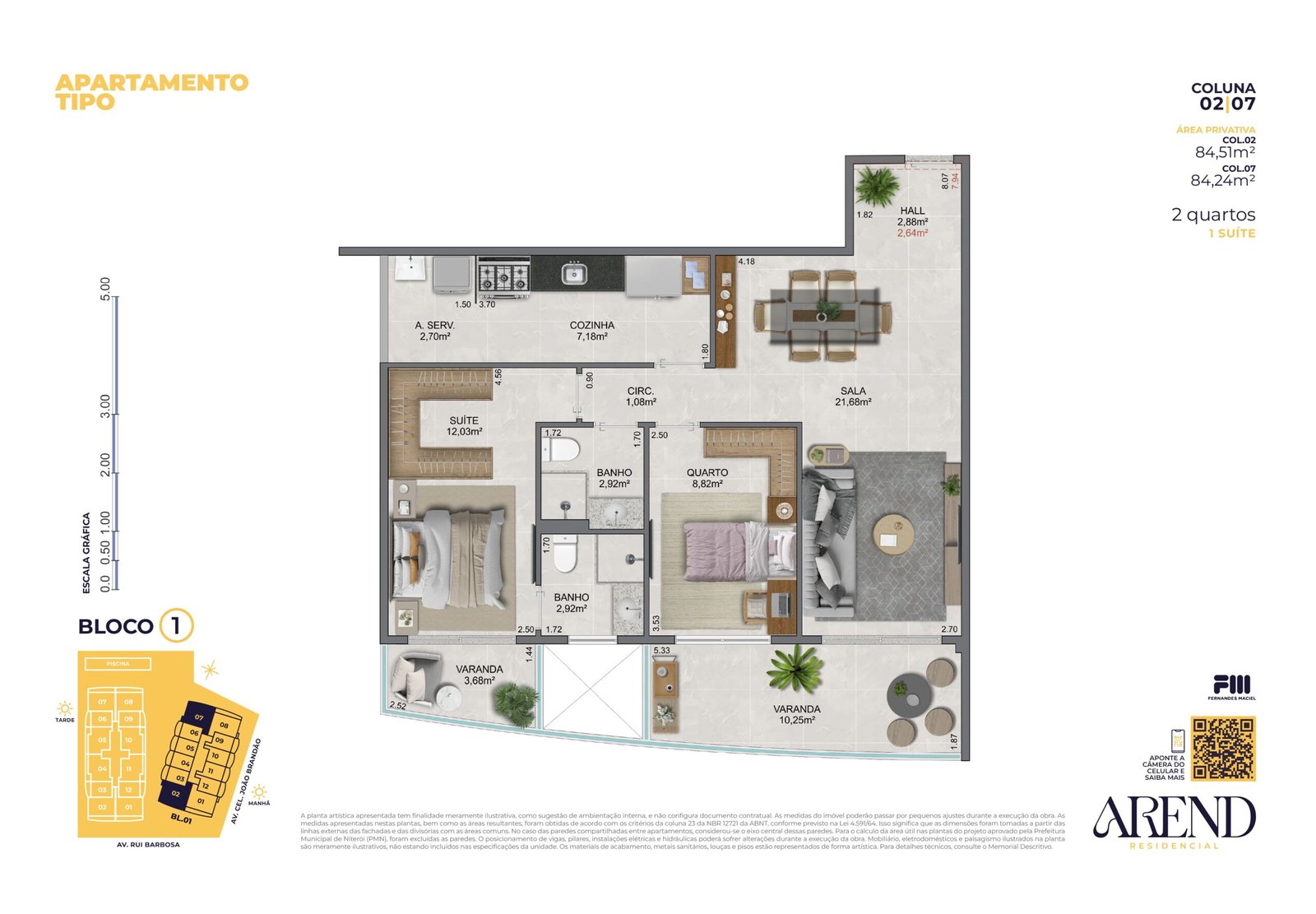 Todas as perspectivas e imagens são meramente ilustrativas podendo sofrer alterações na cor, forma, textura, posicionamento e metragem. A Decoração, iluminação, equipamento e mobiliário das unidades privativas são apenas sugestões, não fazendo parte dos entregáveis, sendo essas meramente enunciativas. A decoração, iluminação, equipamento e mobiliário das áreas comuns, previsto nas perspectivas, poderão ser modificadas, não sendo entregue utensílios, adornos e acessórios eventualmente previsto nas imagens. O paisagismo apresentados nas perspectivas é uma sugestão e apresenta plantas em porte adulto, a ser atingida após a entrega do empreendimento. As informações contidas em todo material publicitário veiculado são meramente ilustrativas, não se configurando como parte de qualquer instrumento legal, podendo, inclusive, ser alterada sem aviso prévio. O empreendimento segue o projeto executivo e às especificações contidas no Memorial de Incorporação, devendo o descrito prevalecer em caso de conflito com qualquer material ou informação. Memorial de Incorporação devidamente registrado na matrícula 25289 no 2º Ofício de Justiça de Niterói. Projeto aprovado pela Prefeitura de Niterói, sob o nº 80/5323/12 em 27/02/2019. Engenheiro responsável: Vicente Paulo Maciel Filho (CREA 85-1-00888 – D/RJ). Autor do projeto: Luiz André Vergara (CAU/RJ: A2616-6). Incorporação e construção: Construtora Fernandes Maciel LTDA (CNPJ 29.761.749/0001-33). Material produzido em Maio de 2025
