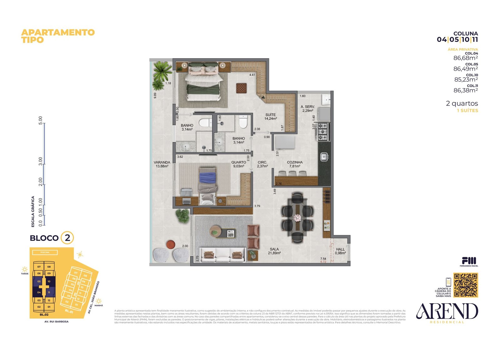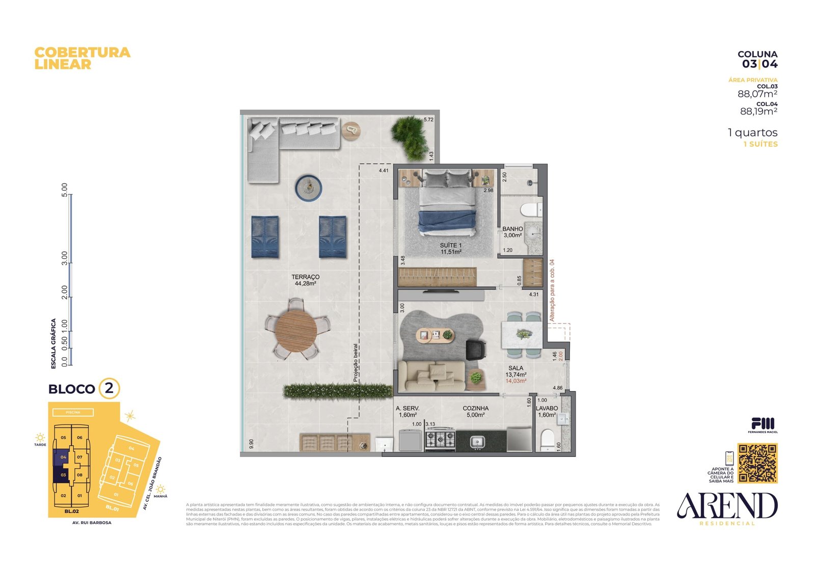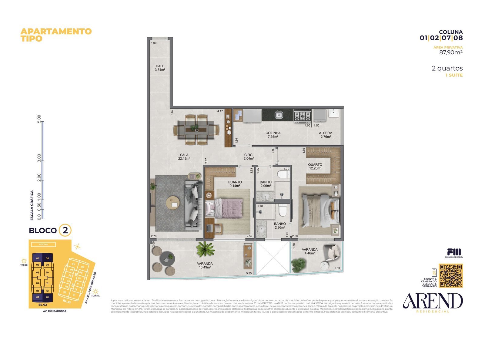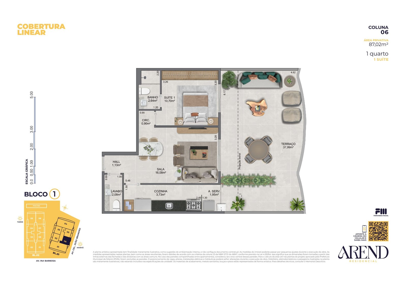 Todas as perspectivas e imagens são meramente ilustrativas podendo sofrer alterações na cor, forma, textura, posicionamento e metragem. A Decoração, iluminação, equipamento e mobiliário das unidades privativas são apenas sugestões, não fazendo parte dos entregáveis, sendo essas meramente enunciativas. A decoração, iluminação, equipamento e mobiliário das áreas comuns, previsto nas perspectivas, poderão ser modificadas, não sendo entregue utensílios, adornos e acessórios eventualmente previsto nas imagens. O paisagismo apresentados nas perspectivas é uma sugestão e apresenta plantas em porte adulto, a ser atingida após a entrega do empreendimento. As informações contidas em todo material publicitário veiculado são meramente ilustrativas, não se configurando como parte de qualquer instrumento legal, podendo, inclusive, ser alterada sem aviso prévio. O empreendimento segue o projeto executivo e às especificações contidas no Memorial de Incorporação, devendo o descrito prevalecer em caso de conflito com qualquer material ou informação. Memorial de Incorporação devidamente registrado na matrícula 25289 no 2º Ofício de Justiça de Niterói. Projeto aprovado pela Prefeitura de Niterói, sob o nº 80/5323/12 em 27/02/2019. Engenheiro responsável: Vicente Paulo Maciel Filho (CREA 85-1-00888 – D/RJ). Autor do projeto: Luiz André Vergara (CAU/RJ: A2616-6). Incorporação e construção: Construtora Fernandes Maciel LTDA (CNPJ 29.761.749/0001-33). Material produzido em Maio de 2025